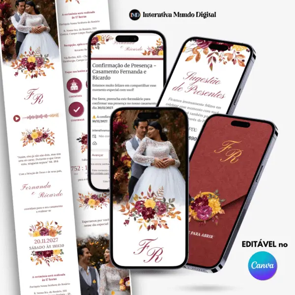 - Link para acessar e editar seu convite de casamento no Canva (modelo responsivo).